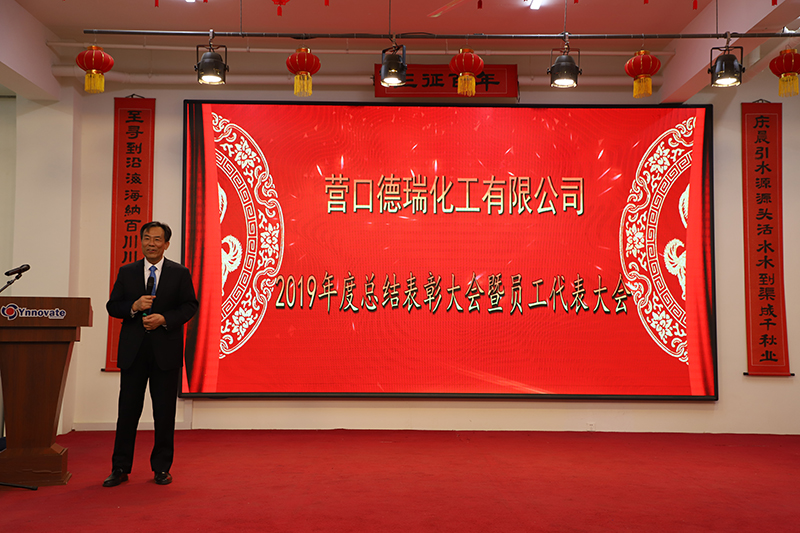 2020年1月22日上午9:00,營口德瑞化工有限公司2019年度總結(jié)表彰大會暨員工代表大會在員工食堂隆重召開,“三征”創(chuàng)始人劉慶晨教授,盛海投資董事長、營創(chuàng)三征黨委書記劉至尋先生,營新科技生產(chǎn)總監(jiān)劉健先生,營創(chuàng)三征行政總監(jiān)商富麗女士,營創(chuàng)三征ESH總監(jiān)齊長亮先生,德瑞化工全體管理層及員工代表,共計150余人出席了大會,公司副總經(jīng)理周永強(qiáng)先生主持會議。